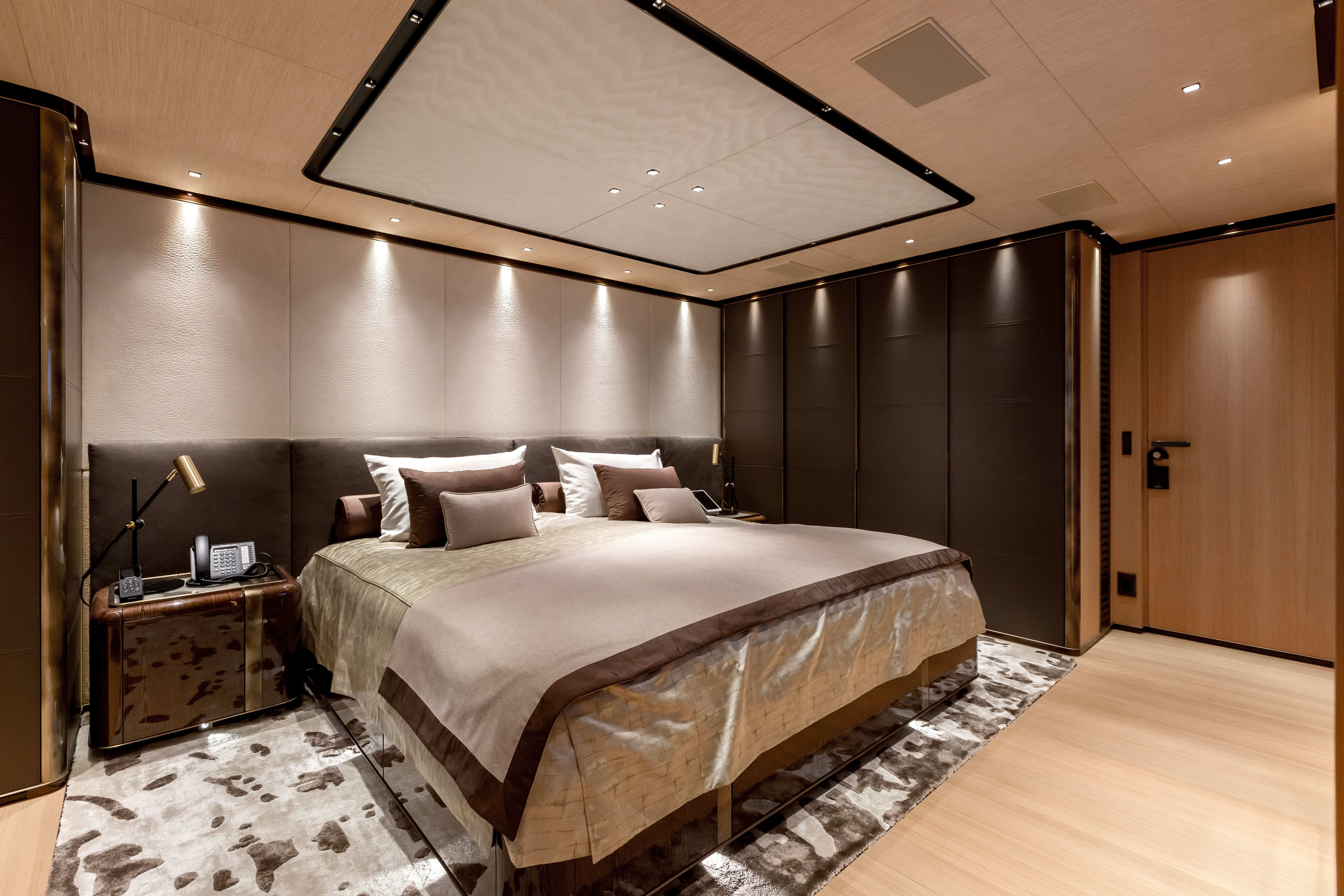 The luxurious Master stateroom and VIP cabins are forward of the salon and dining. An upper deck offers a sky lounge aft and the bridge forward. Tankoa superyacht Vertige provides deluxe accommodation in six cabins, including the main deck full-beam master and VIP suite, as well as four lower deck cabins for up to 12 charter guests.