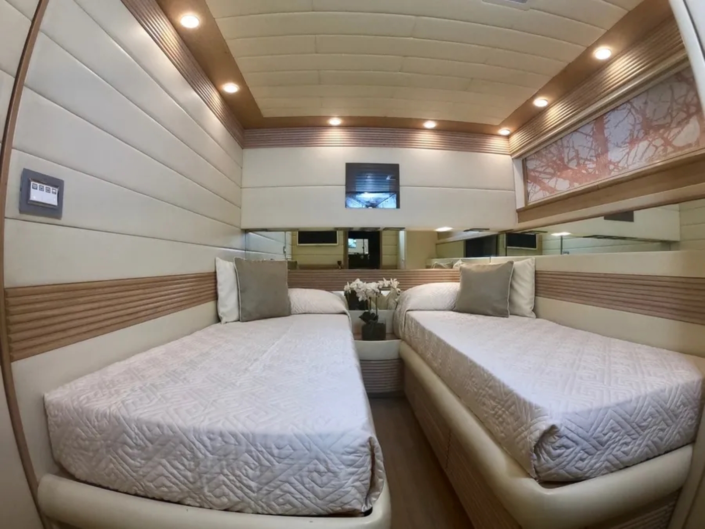 She received a refit in 2022 and can accommodate up to 8 guests, in 4 spacious and bespoke cabins. The concept behind the yacht boasts innovative ‘Demotic’ technology, allowing for complete relaxation and sensory enjoyment, from mood lighting and temperatures to entertainment and custom features, all at the press of a button.