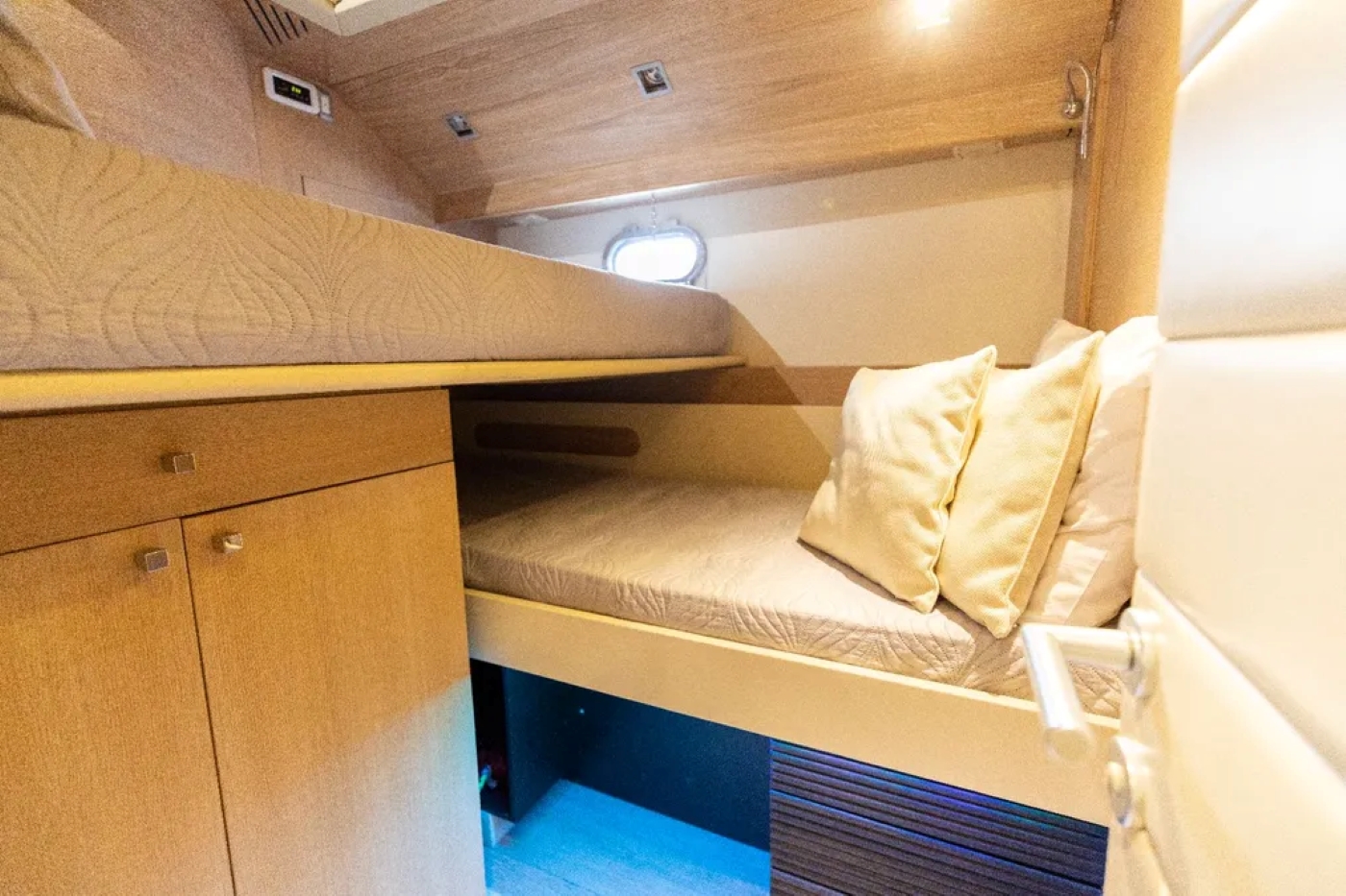 She received a refit in 2022 and can accommodate up to 8 guests, in 4 spacious and bespoke cabins. The concept behind the yacht boasts innovative ‘Demotic’ technology, allowing for complete relaxation and sensory enjoyment, from mood lighting and temperatures to entertainment and custom features, all at the press of a button.