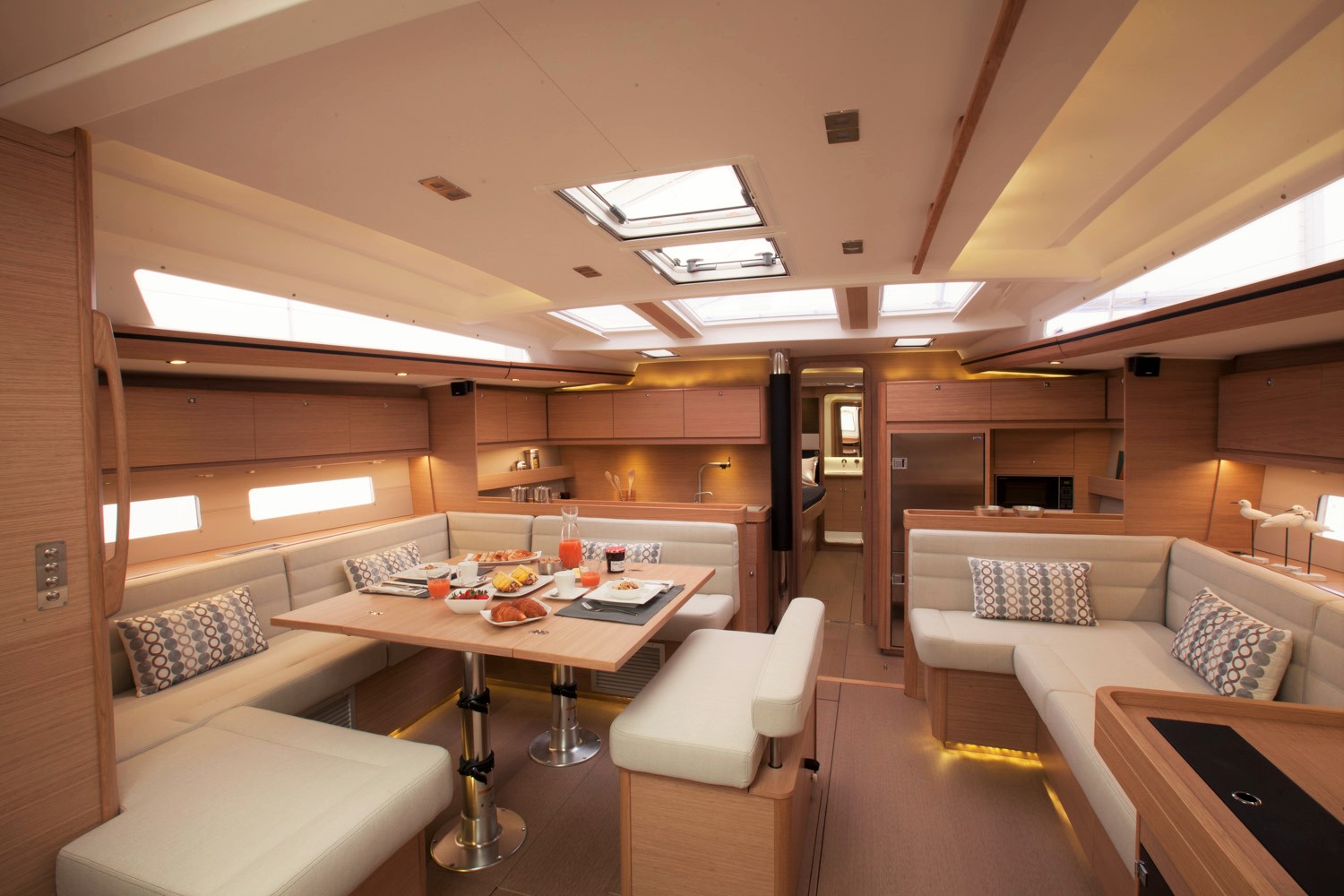 The salon and dining is an open plan, offering a large seating area, formal dining table and opposing seating. A well-equipped galley is forward of the salon, providing guests with additional relaxing space. Thanks to side ports and overhead hatches, DRUNKEN SAILOR receives plenty of natural light.