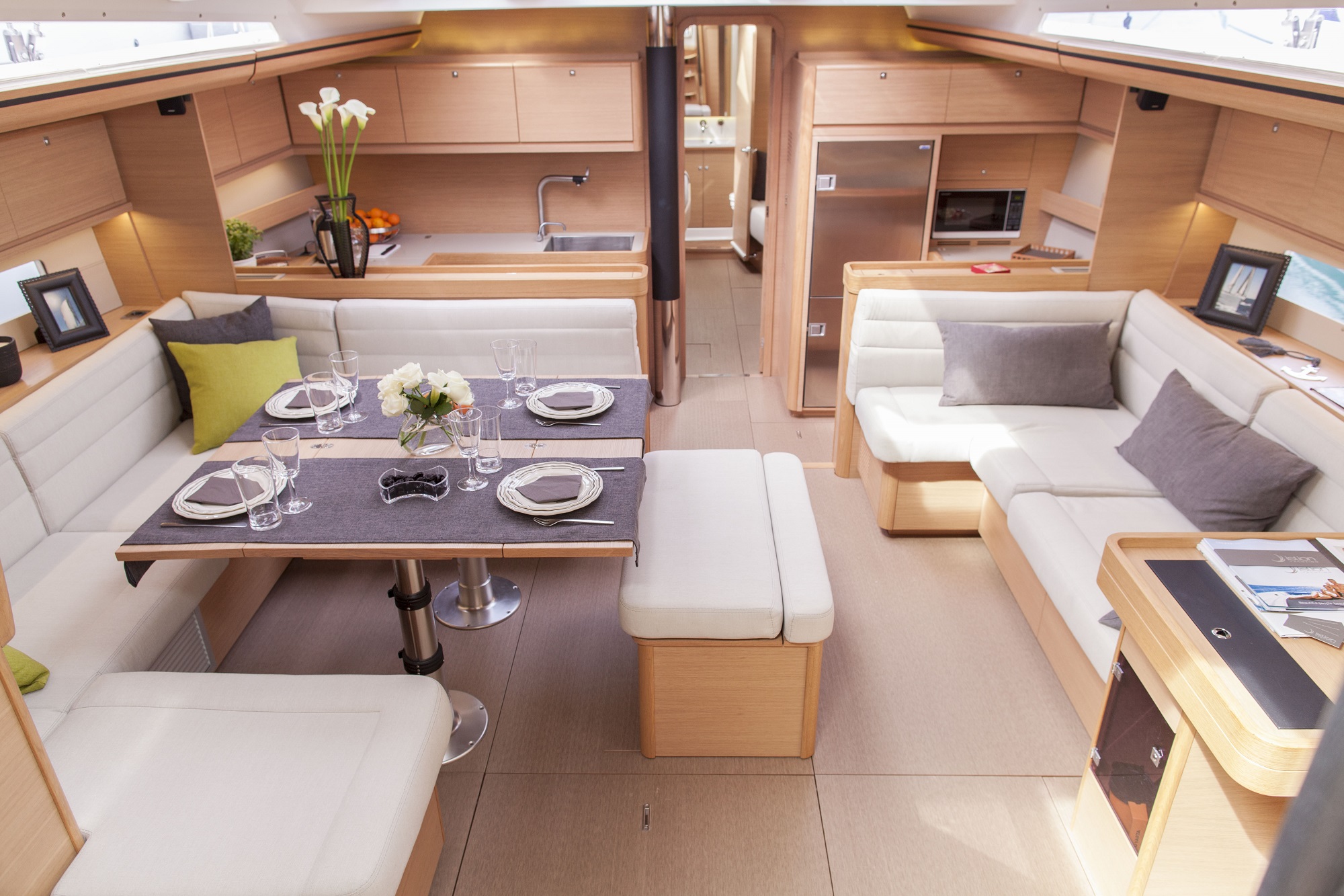 The salon and dining is an open plan, offering a large seating area, formal dining table and opposing seating. A well-equipped galley is forward of the salon, providing guests with additional relaxing space. Thanks to side ports and overhead hatches, DRUNKEN SAILOR receives plenty of natural light.