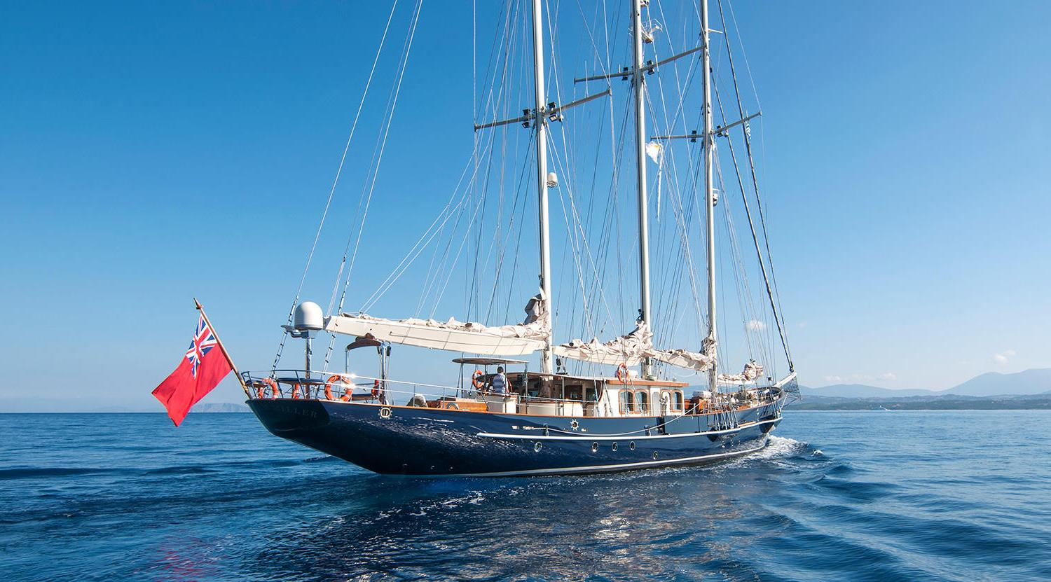 Built by John Lewis & Sons in 1968, sailing yacht Malcolm Miller (ex Malcolm Miller, Helena C) is a beautiful 45-metre classic three-masted topsail schooner, with the last refit by Conrad Shipyard in 2014/15.