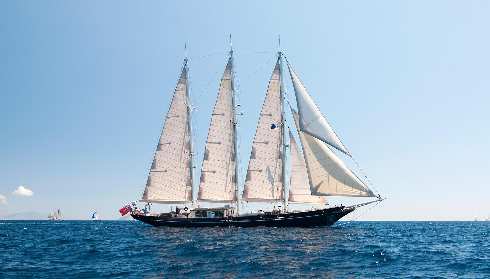 Built by John Lewis & Sons in 1968, sailing yacht Malcolm Miller (ex Malcolm Miller, Helena C) is a beautiful 45-metre classic three-masted topsail schooner, with the last refit by Conrad Shipyard in 2014/15.