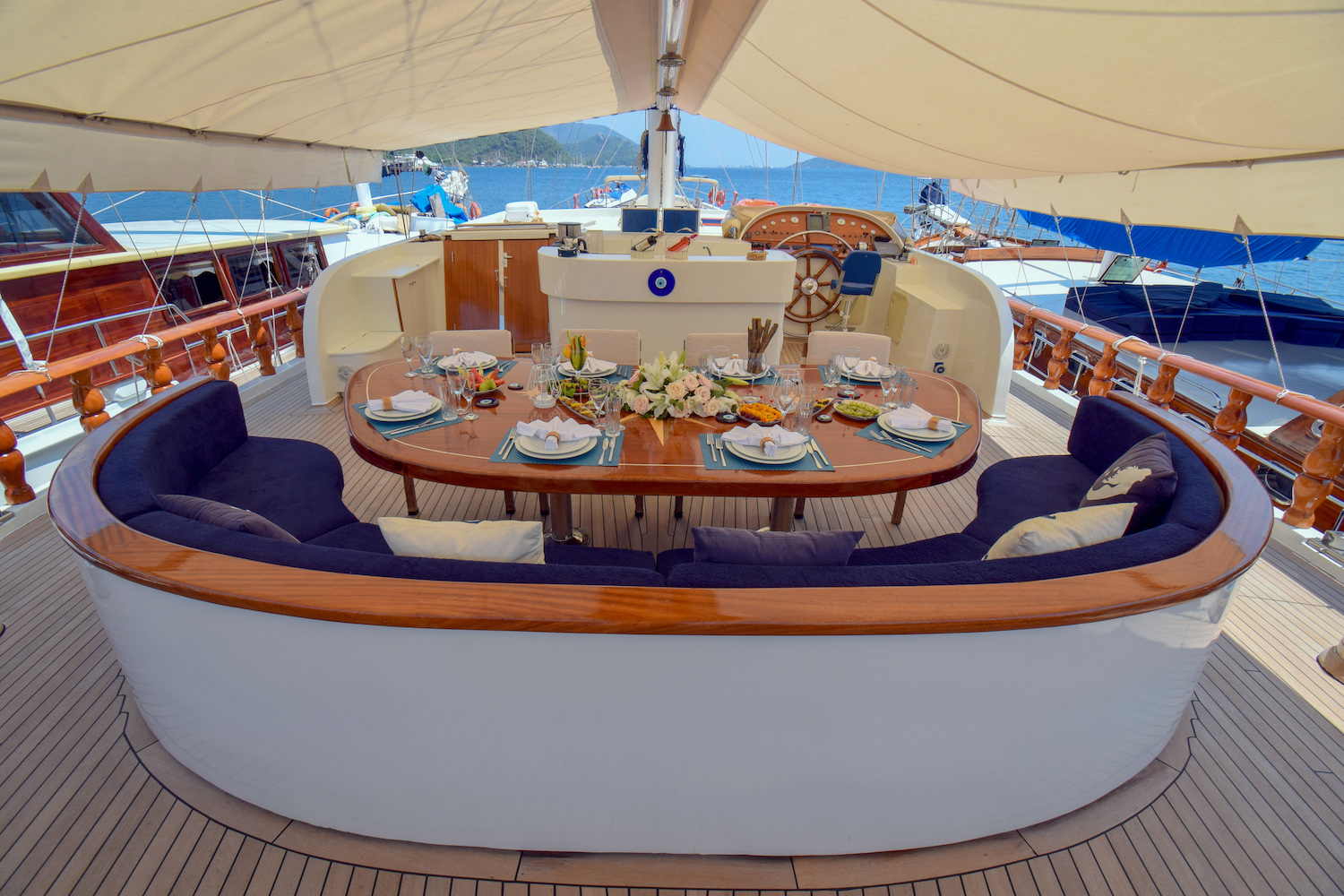 Luxury Sailing Gulet PERLA DEL MAR II provides yacht charters in The Mediterranean, Europe, Carian Coast, Turkey, Slovenia, Marmaris, Gocek, and Fethiye.