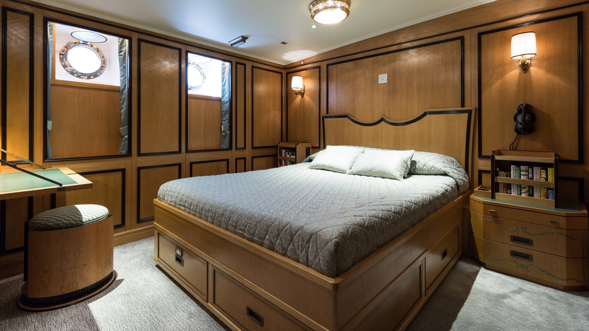 On the lower deck is further five guest cabins, each boasting distinct and unique styling.