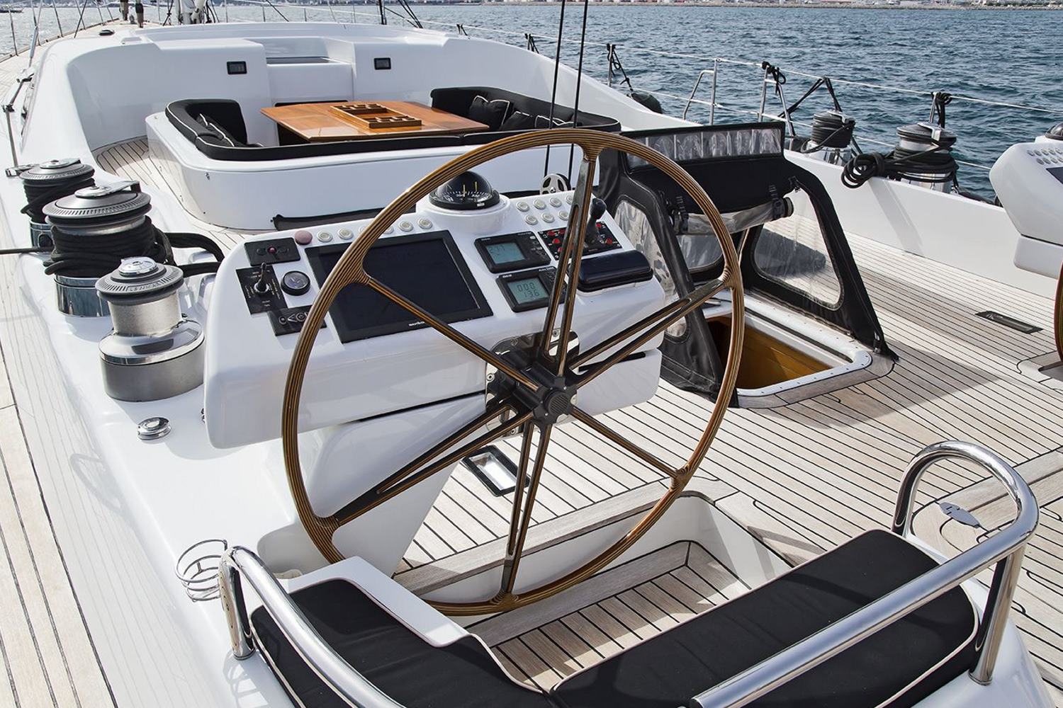 For instance, a subtle art deco feeling has been furthered with the use of fine metal inlays and cover plates, as well as the sliding Japanese screens in front of her portholes. The interior woodwork has been handcrafted in lovely warm glowing pear-wood. Luxury also means modernity, technology and innovation.
