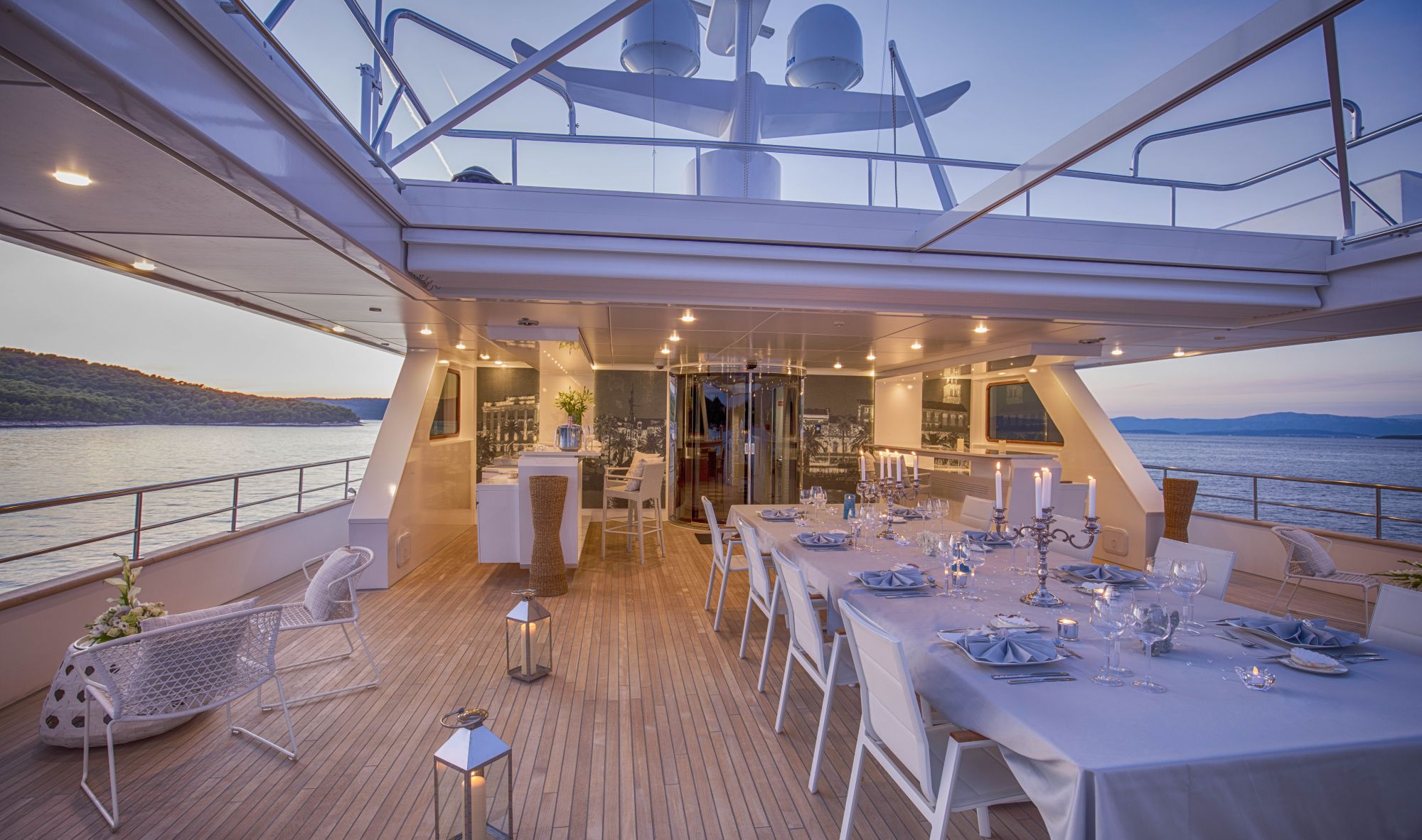 Her living spaces are of a generous size, including sunbathing, socializing, relaxation and dining areas. There is also an elevator that serves all deck.