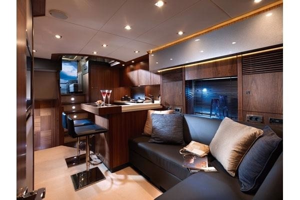 Thanks to elongated side windows, forward facing interior windscreens and wide sliding doors aft, the yacht BG3 boasts ample natural light. Below decks is a modern galley, additional salon seating, entertainment and 3 generous guest cabins.