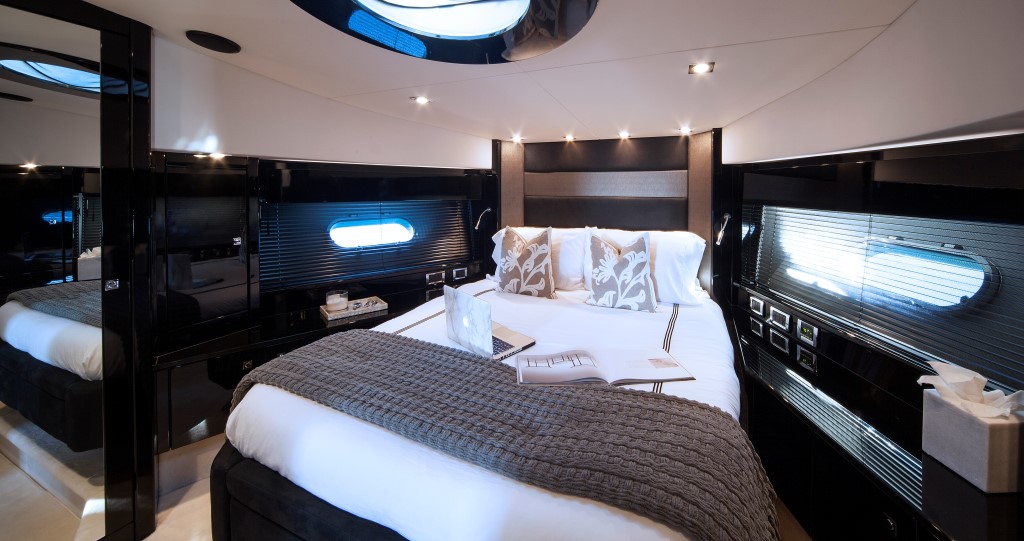 M/Y BG3 has a contemporary interior décor, with an edgy black and white theme, toned down with mutes greys, creating an elegant and sophisticated ambiance.
