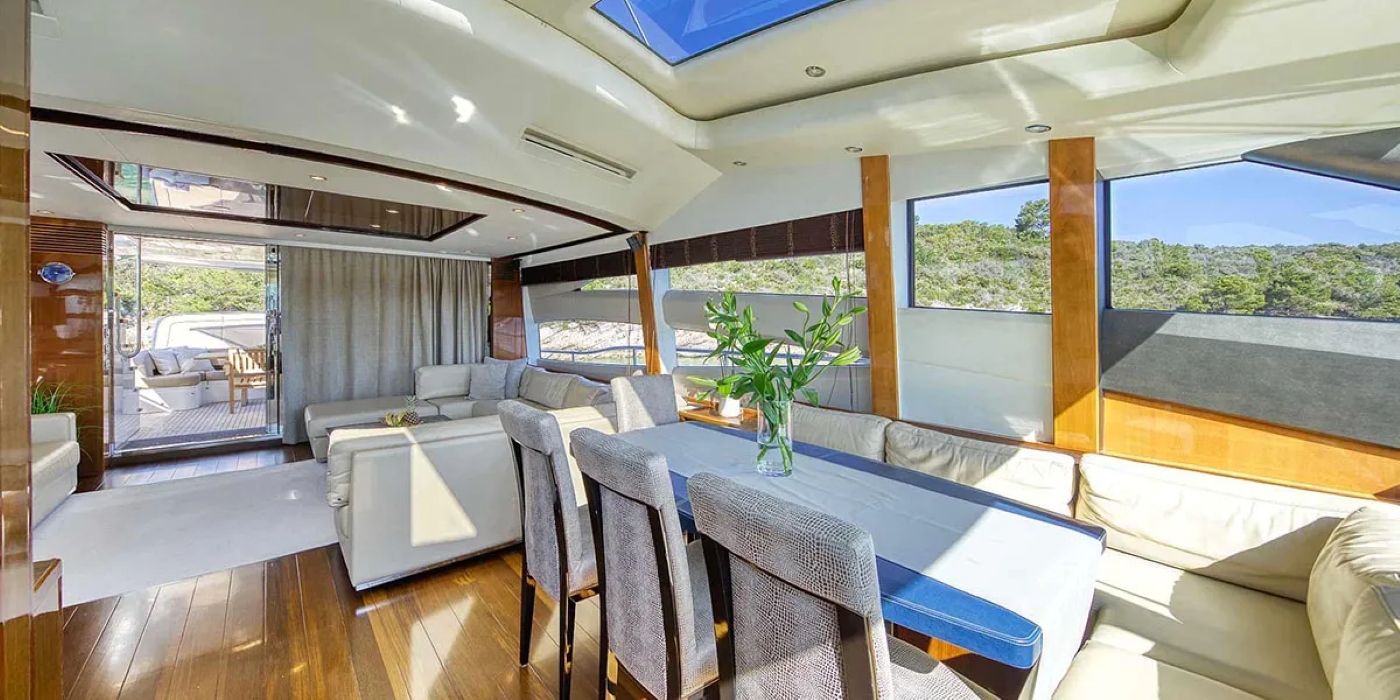 On deck, the yacht features 3 areas for guests to relax, including a shaded aft deck with alfresco dining, seating and a raised sunbed.