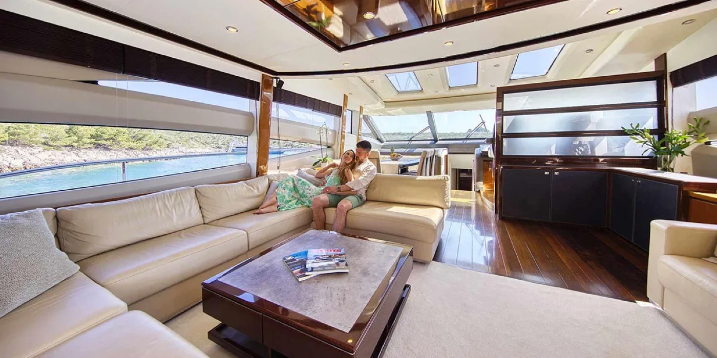 Her foredeck has additional sunning and seating, while the upper deck is well-appointed offering wrap-around seating and a casual cocktail table.