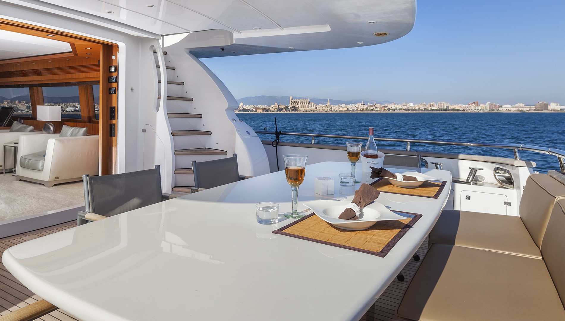 Enjoying the outdoors is made effortless with great exterior living, laid over 2 decks. Adjacent to the salon, sliding glass doors lead to the partially shaded aft deck, with alfresco dining and seating.
