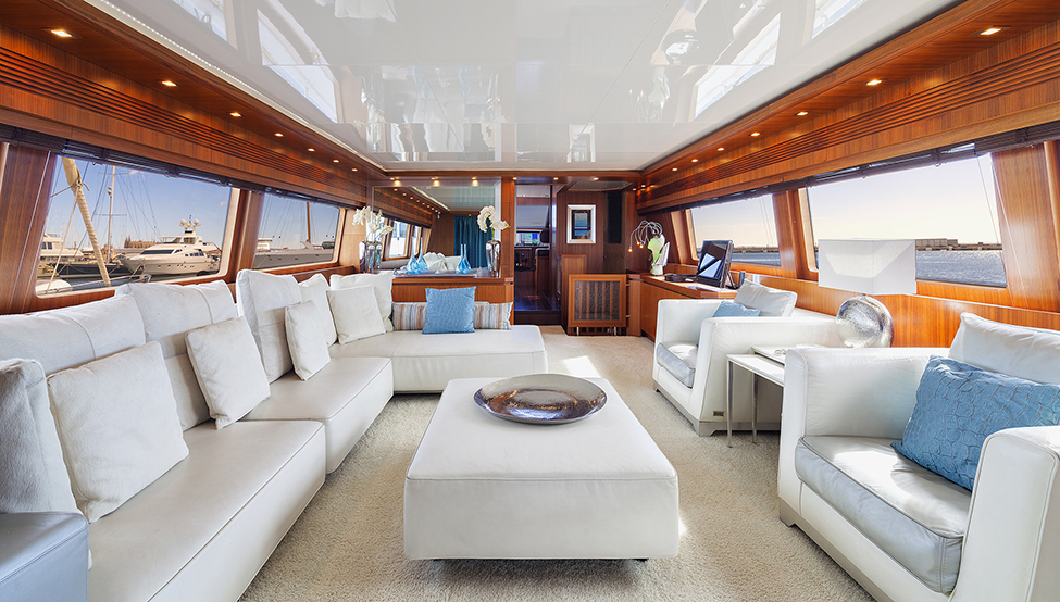 The main salon offers a generous lounge aft and formal dining forward. Surrounding windows provide natural light and spectacular views. Below decks are 4 guest cabins, comprising a master, VIP and 2 twin cabins, all tastefully finished.