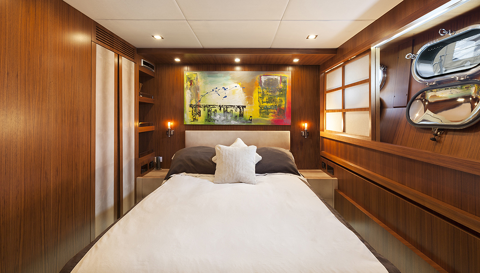 The yachts light and airy interiors are contemporary and welcoming, featuring neutral toned soft furnishings and warm woods throughout.