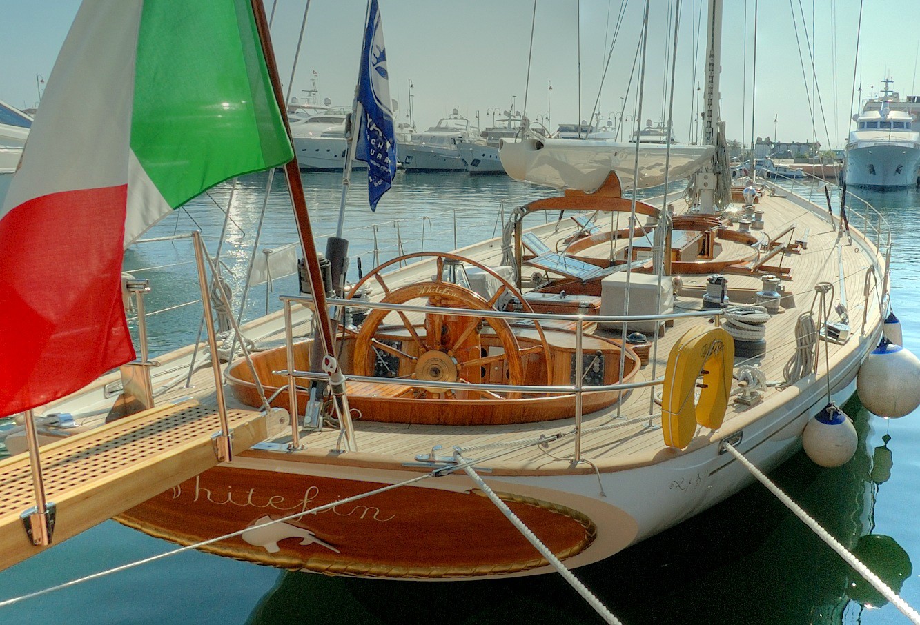 Sailing yacht WHITEFIN provides yacht charters in The Mediterranean, South Of France, Europe, Solenzara, Sicily, Sardinia, Propriano, and Portofino.