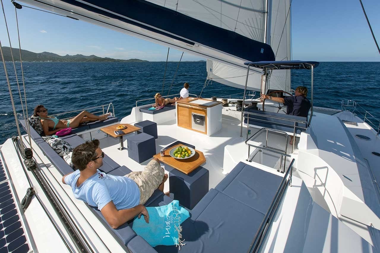 On the upper deck, the Foutaine Pajot’s flybridge design has been extended to ensure the ultimate space for entertaining. The upper deck features a full beam seating and sunning area, optional shade, further seating, cocktail tables that quickly convert into alfresco dining tables and a wet bar fridge area.
