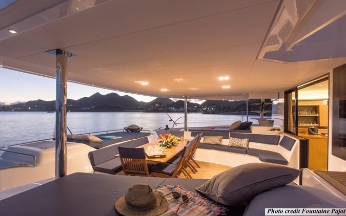 The Victoria 67 catamaran BAMARANDI features an abundance of exterior living on 2 decks.