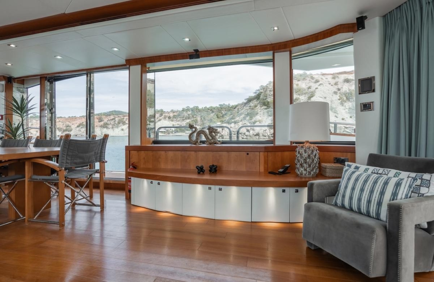 Her elegant and modern saloon provides access to a drop-down balcony thanks to a huge sliding door. The saloon is spacious, bright and very comfortable.