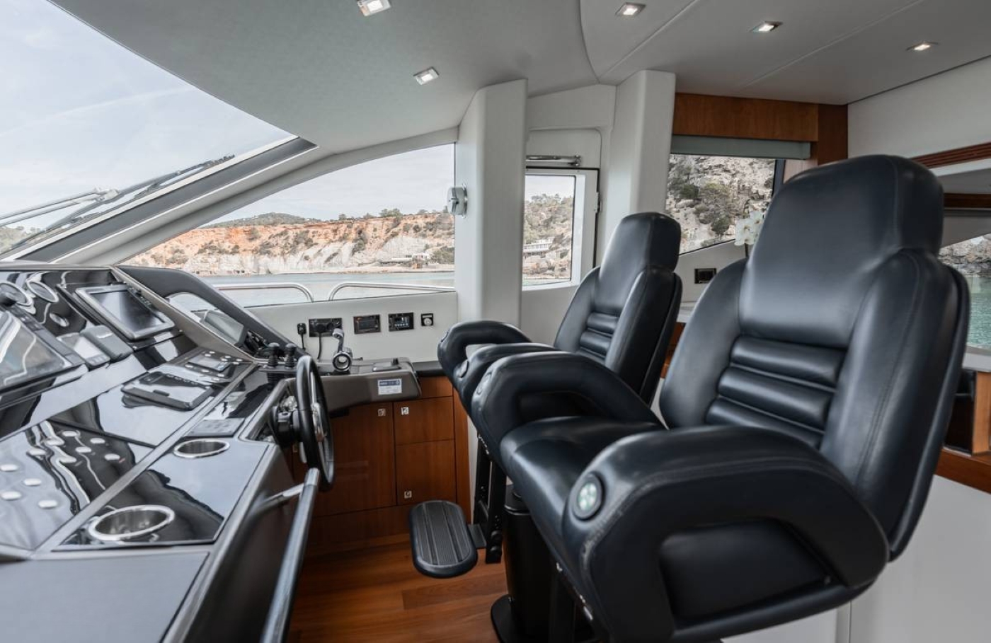 Accommodation is offered in one full-width master cabin boasting a king-sized bed, a walk-in wardrobe, a sofa, vanity area, a flat screen TV and the latest in entertainments systems; a large VIP cabin, a double cabin as well as on e twin cabin. All guest accommodation features en suite shower rooms with large jet showers.