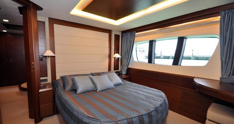 Crewed charter yacht LADY CAROLE features a contemporary timeless interior décor. Smooth Italian mahogany woods, are paired with neutral soft furnishings and elegant Italian silk fabrics.