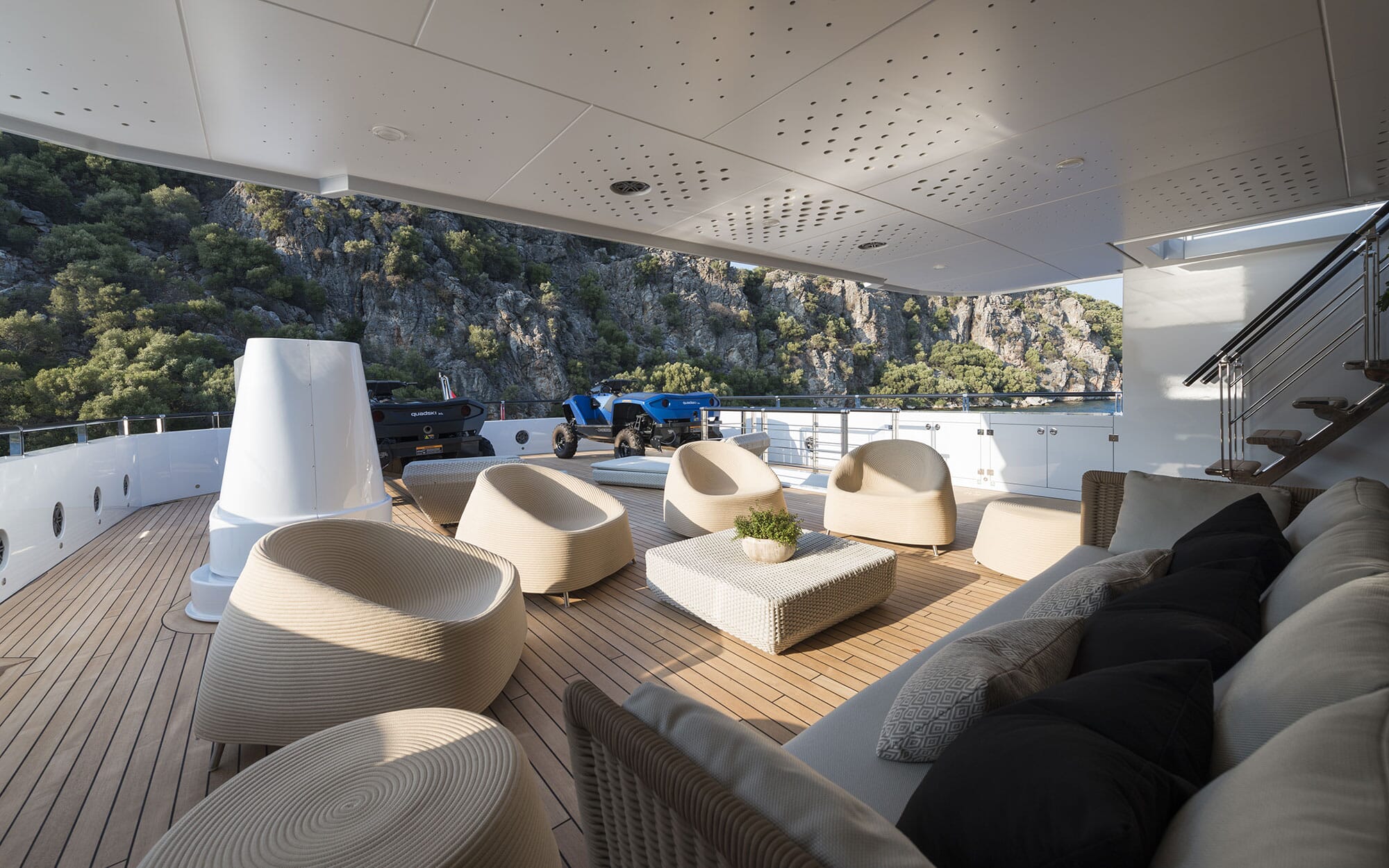 NOTABLE FEATURES: On deck master suite ~ Unique design with multiple interior to exterior balconies ~ Eco friendly ~ Large beach club ~ Jacuzzi ~ Zero speed stabilizers