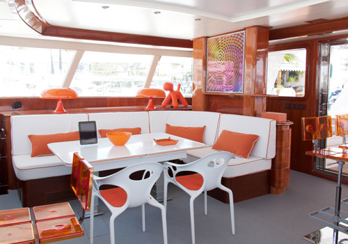 Paintings, sculptures and furniture designs of Alexander Calder, Auguste Herbin, Martha Botto, Philippe Stark and Ross Lovegrove are together with modern conveniences such as iPads & iPods in the cabins and the salon, a Wii games ...
