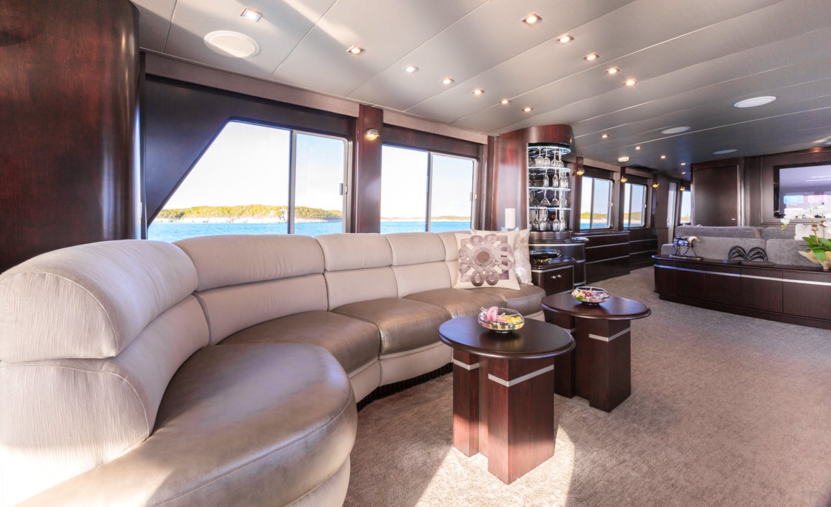 The flybridge is a hot spot for alfresco dining and outdoor living and features ...