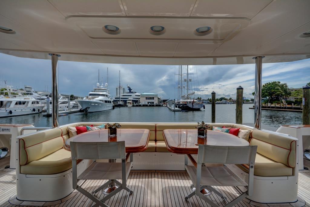 NOTABLE FEATURES for SIXTY SIX: Contemporary interiors ~ Open plan salon and dining ~ On deck master stateroom ~ Alfresco dining on aft deck and upper deck ~ Wet bar on the upper deck