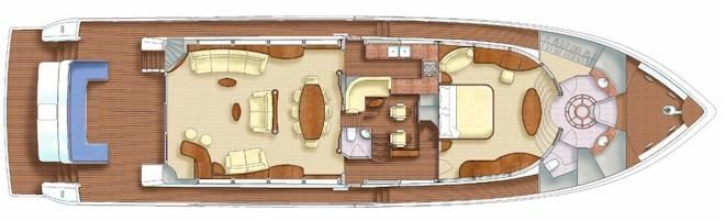 NOTABLE FEATURES for SIXTY SIX: Contemporary interiors ~ Open plan salon and dining ~ On deck master stateroom ~ Alfresco dining on aft deck and upper deck ~ Wet bar on the upper deck