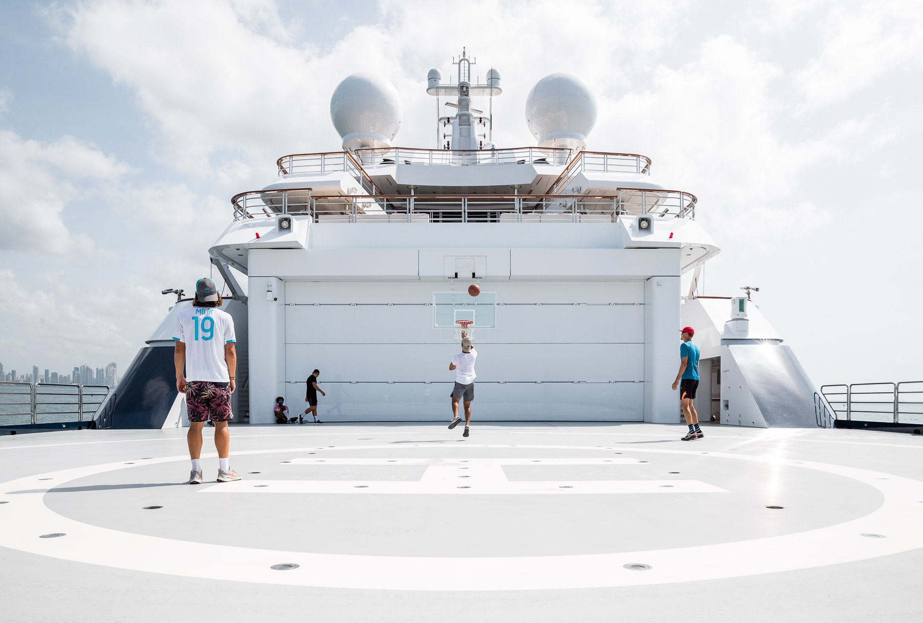Guests will either arrive at the stern on board the 9.34m custom Vikal International Limousine tender or onto one of the helidecks – the aft deck is available for commercial use and the foredeck for touch and go. All the deck officers are certified as Helicopter Landing Officers and the deckhands as Helideck Assistants for emergency use.