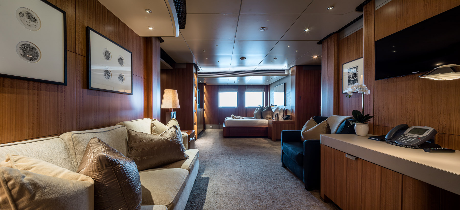 Decks two and three are for the crew and operations where generous cabins, a lounge and crew galley are alongside technical and communications areas.