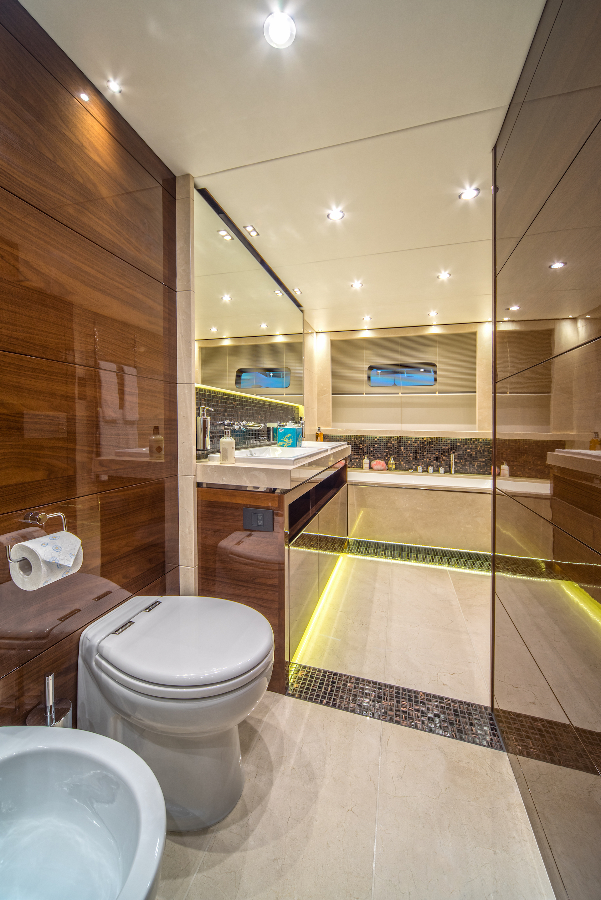 These include a lavish master suite with an office and a spacious deluxe en suite bathroom, 2 VIP staterooms, as well as 2 twin guest cabins. Moreover, guests are pampered by a highly professional crew of 7 members.