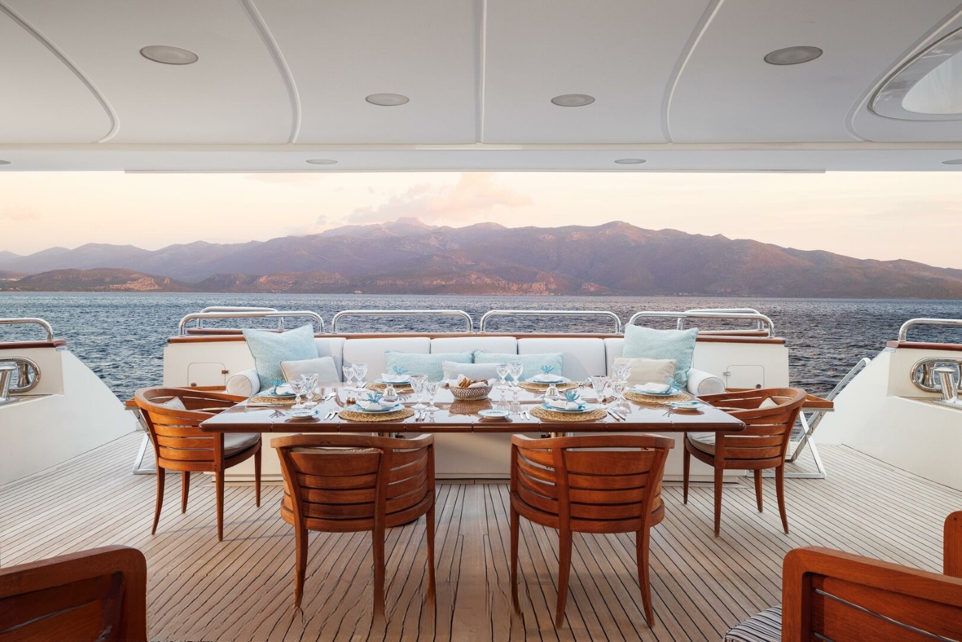 Designed by Stefano Righini, she offers vast exterior spaces ideal for socialising and enjoying the sun, as well as stylish interior living areas great for relaxation and dining in style. There are six deluxe cabins that accommodate 12 guests in total comfort.
