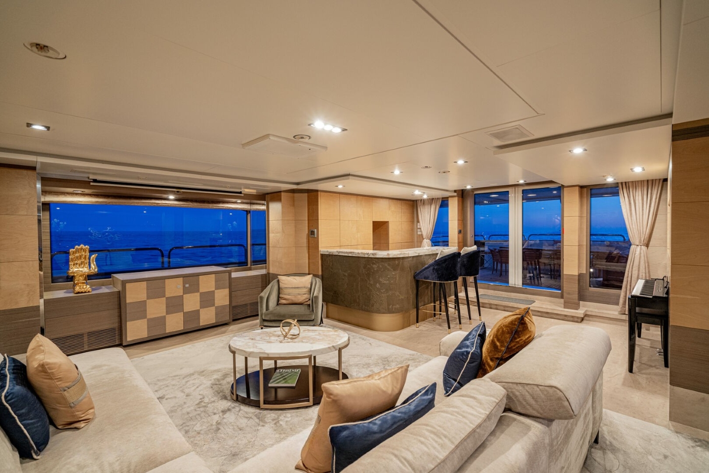 From the cosy seating area around the fireplace in the main salon to her huge daybed in the bridge deck salon, there are many different zones onboard designed with relaxation in mind.