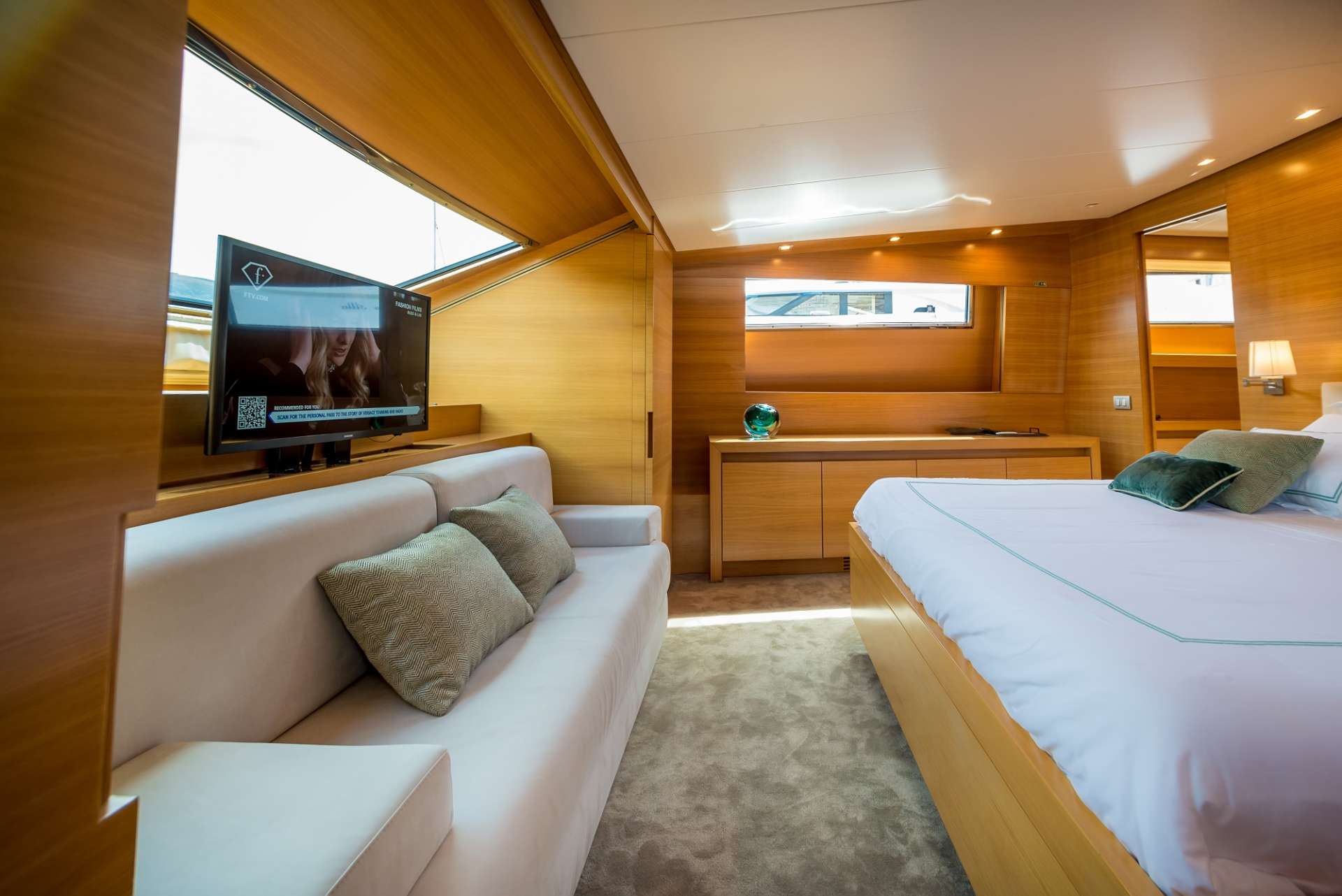 Guest accommodation is in one master cabin on the main deck forward, and 3 guest cabins on the lower deck.