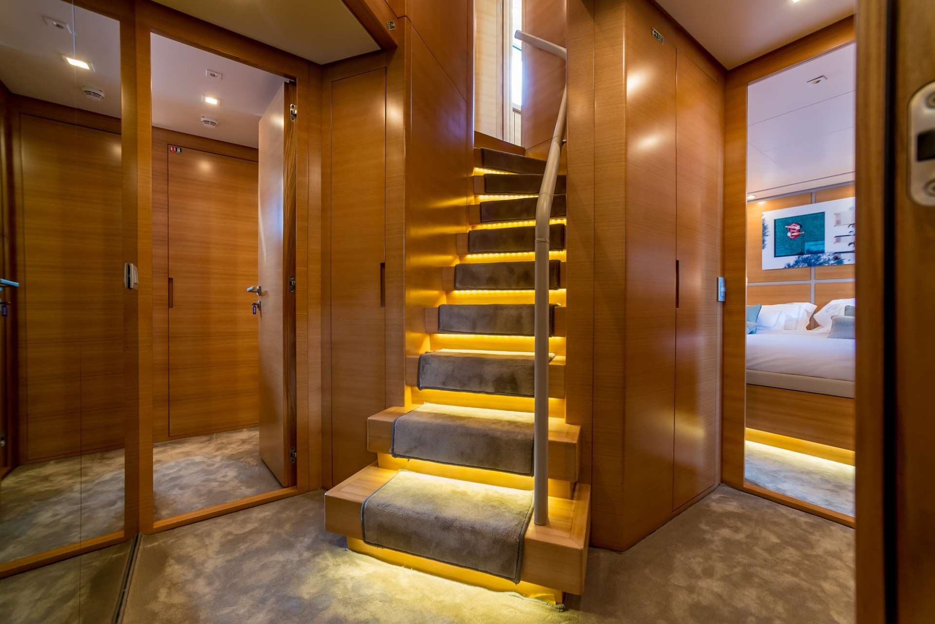 Guest accommodation is in one master cabin on the main deck forward, and 3 guest cabins on the lower deck.