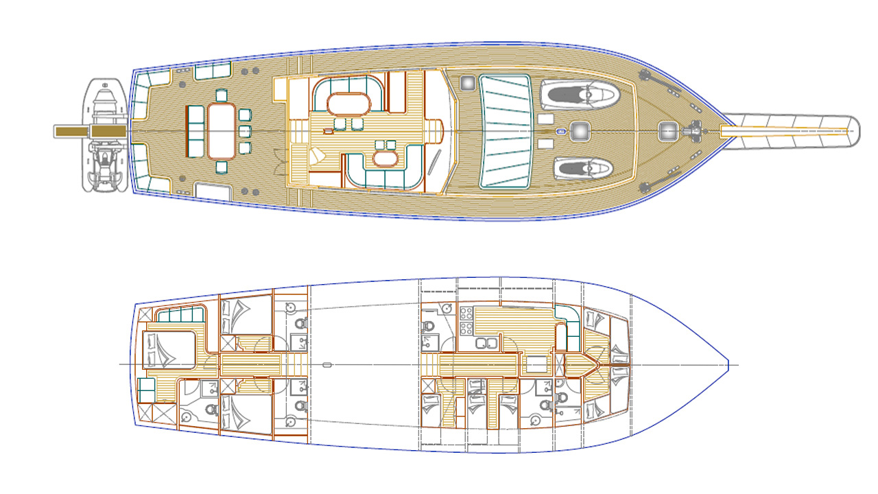 Her spacious teak decks offer charter guests numerous areas to socialize and unwind. The aft section features alfresco dining and a large seating area.