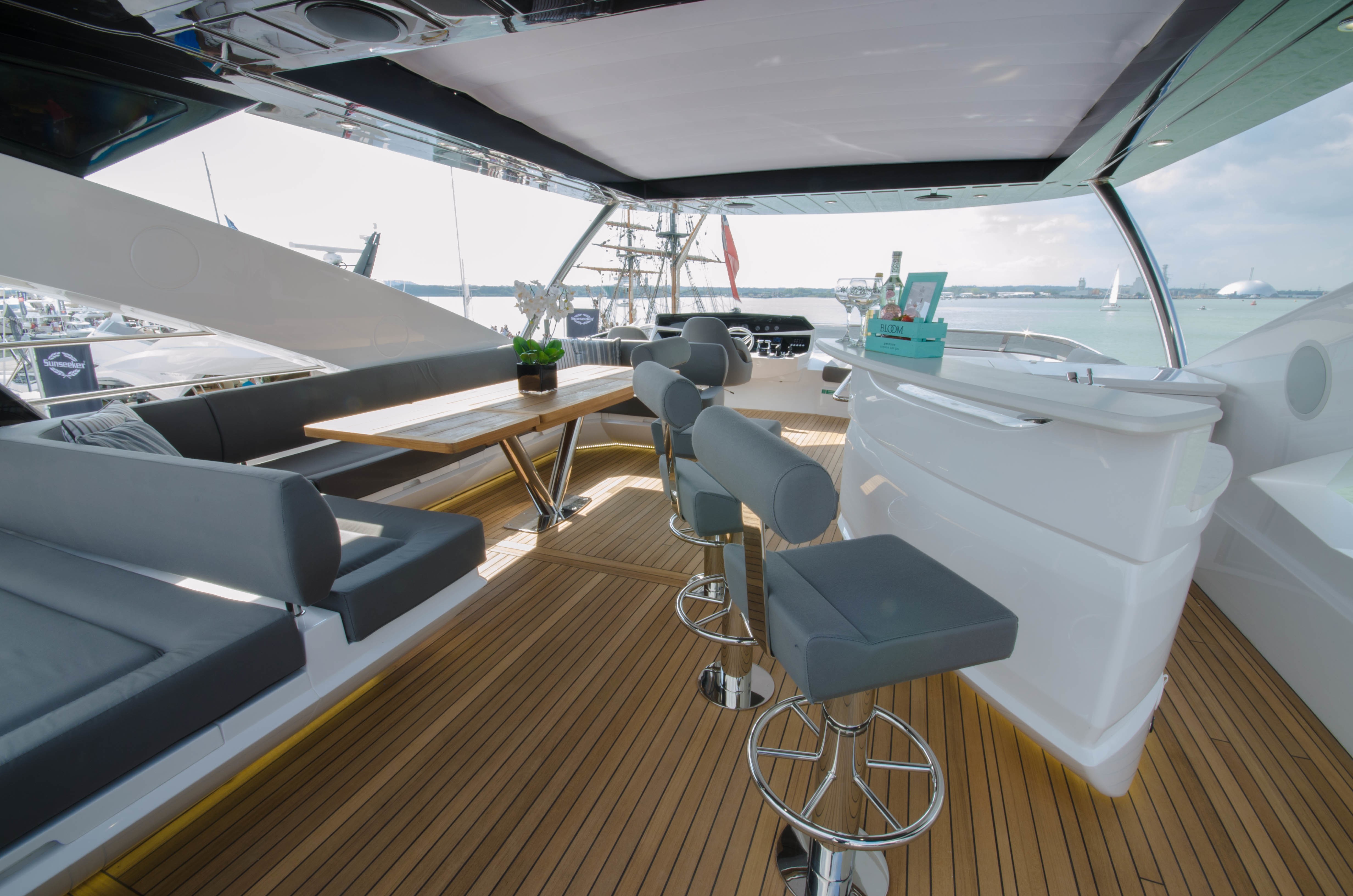 M/Y AUTUMN boasts sleek lines and a sporty design. The exterior living space is very well-appointed for complete relaxation or entertaining.