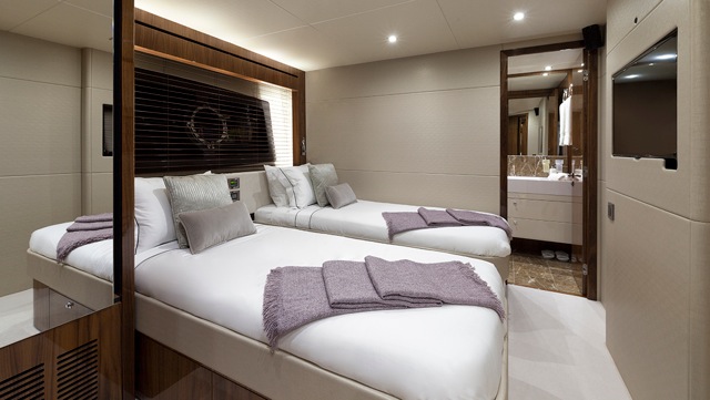 Offering sumptuous accommodation throughout, M/Y AUTUMN is available for crewed yacht charters, for up to 8 guests, in 4 en-suite cabins.