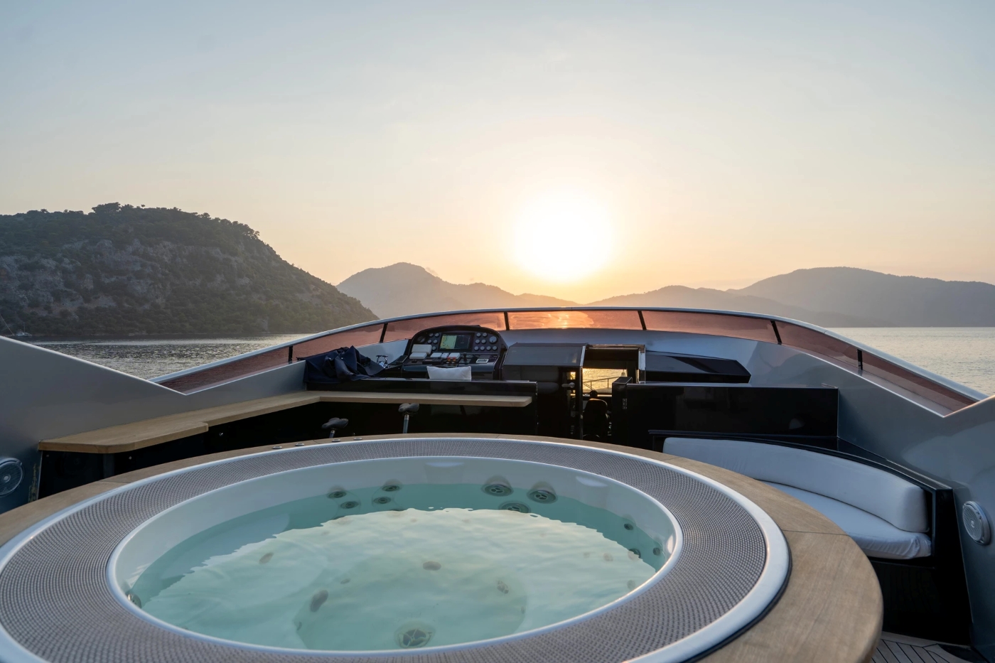 NOTABLE FEATURES: ~ Jacuzzi ~ Zero-speed stabilisers ~ Water toys ~ Alfresco dining area ~ Sunbathing space