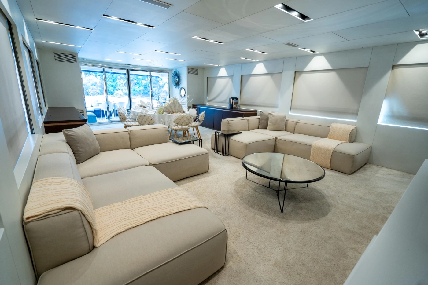 One of the many highlights aboard the striking HARUN yacht includes a spacious open-plan main salon and staterooms.