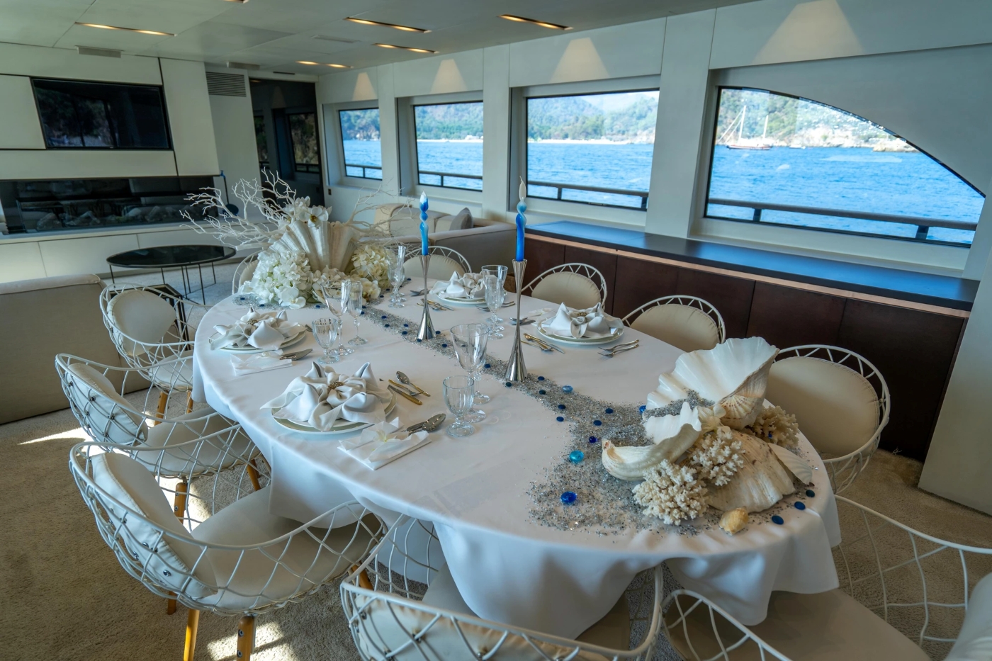 NOTABLE FEATURES: ~ Jacuzzi ~ Zero-speed stabilisers ~ Water toys ~ Alfresco dining area ~ Sunbathing space