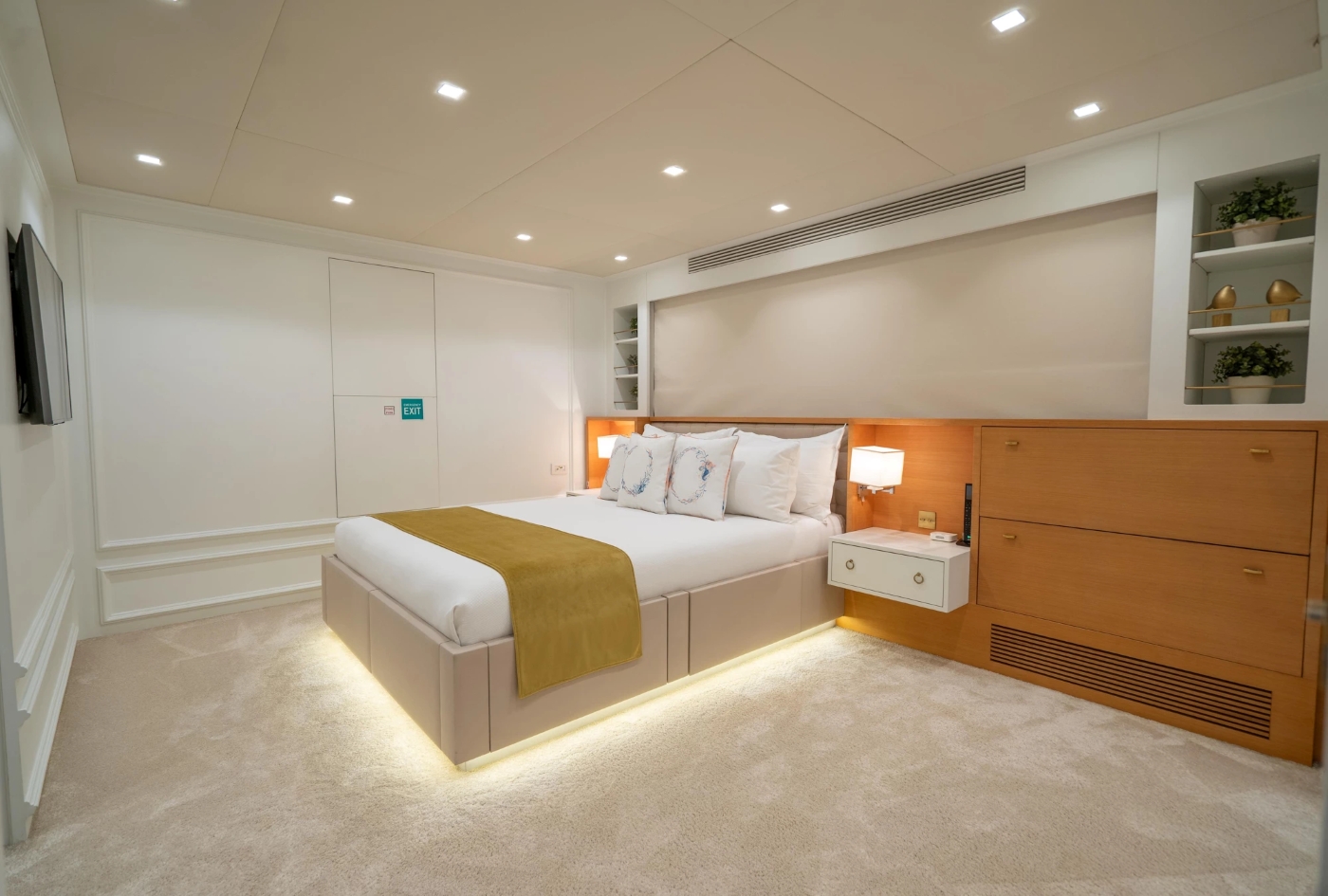 One of the many highlights aboard the striking HARUN yacht includes a spacious open-plan main salon and staterooms.