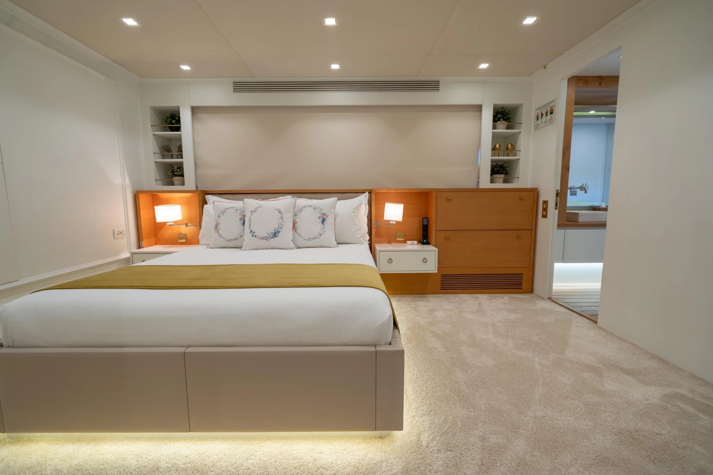 She boasts 5 beautifully appointed cabins, including a gorgeous master suite on the main deck, as well as a VIP stateroom, two double cabins and one twin cabin. HARUN also carries a professional crew of 5 members.