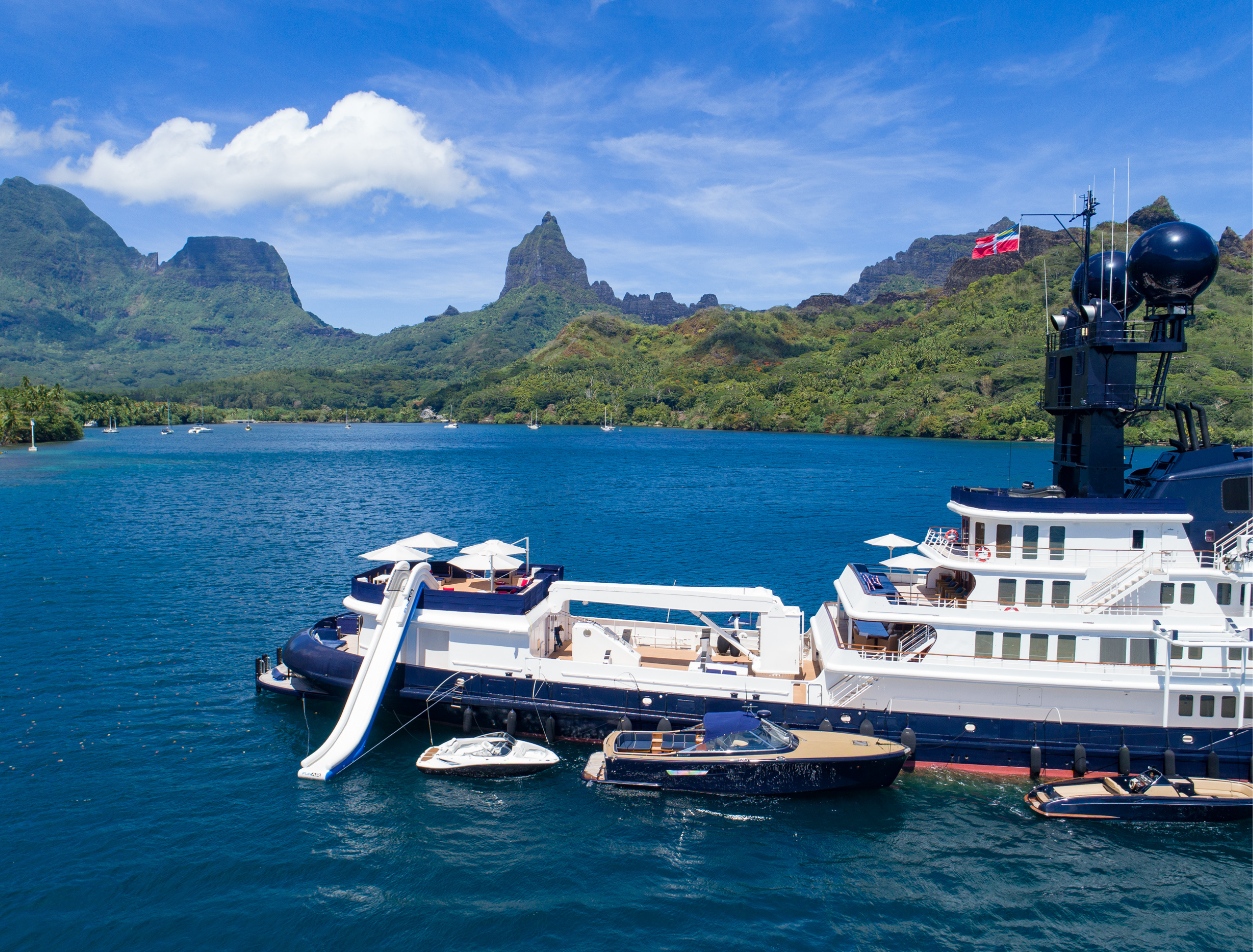 Her seven stylish staterooms accommodate up to 12 guests, attended by a highly experienced crew, while her expansive decks and exceptional selection of tenders and water toys provide the ultimate platform for adventure.