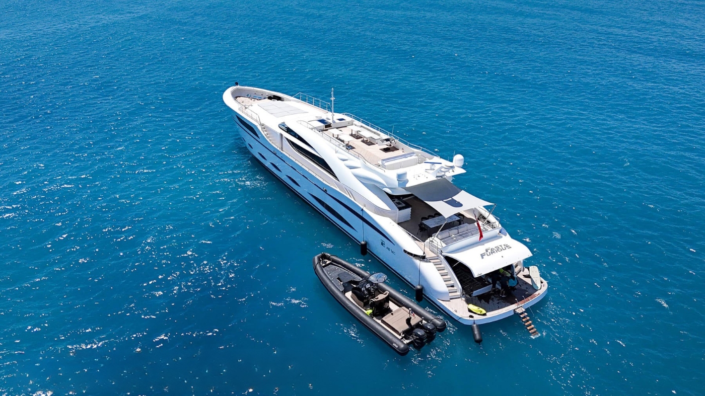 Measuring 44.60m (146' 4") meters in length, the well-sized superyacht FAST AND FURIOUS (AB 145) is a striking sporty vessel, built by the Italian shipyard AB Yachts, part of Fipa Group. This luxury vessel boasts amazing extended spaces both inside and outside. She can accommodate up to 10 charter guests in 5 deluxe cabins.