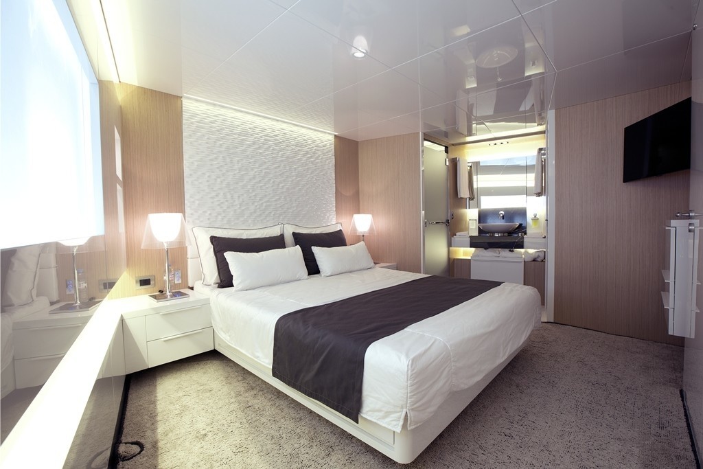 Her wrap around main deck leads to the foredeck’s double sunpad, which effortlessly converts into a further alfresco dining option. The yachts full beam extended swim platform is accessed from both port and starboard with optimal ease, fantastic for water enthusiasts.