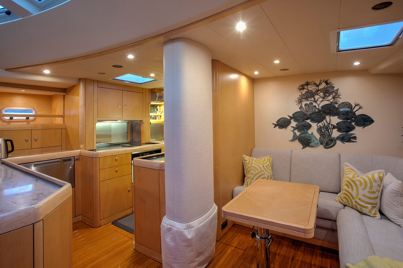An upper salon boasts wrap around windows and stunning views, the perfect area to enjoy a social dinner and entertain. The lower salon is spacious and comfortable, ideal for relaxing at any time of the day or night.
