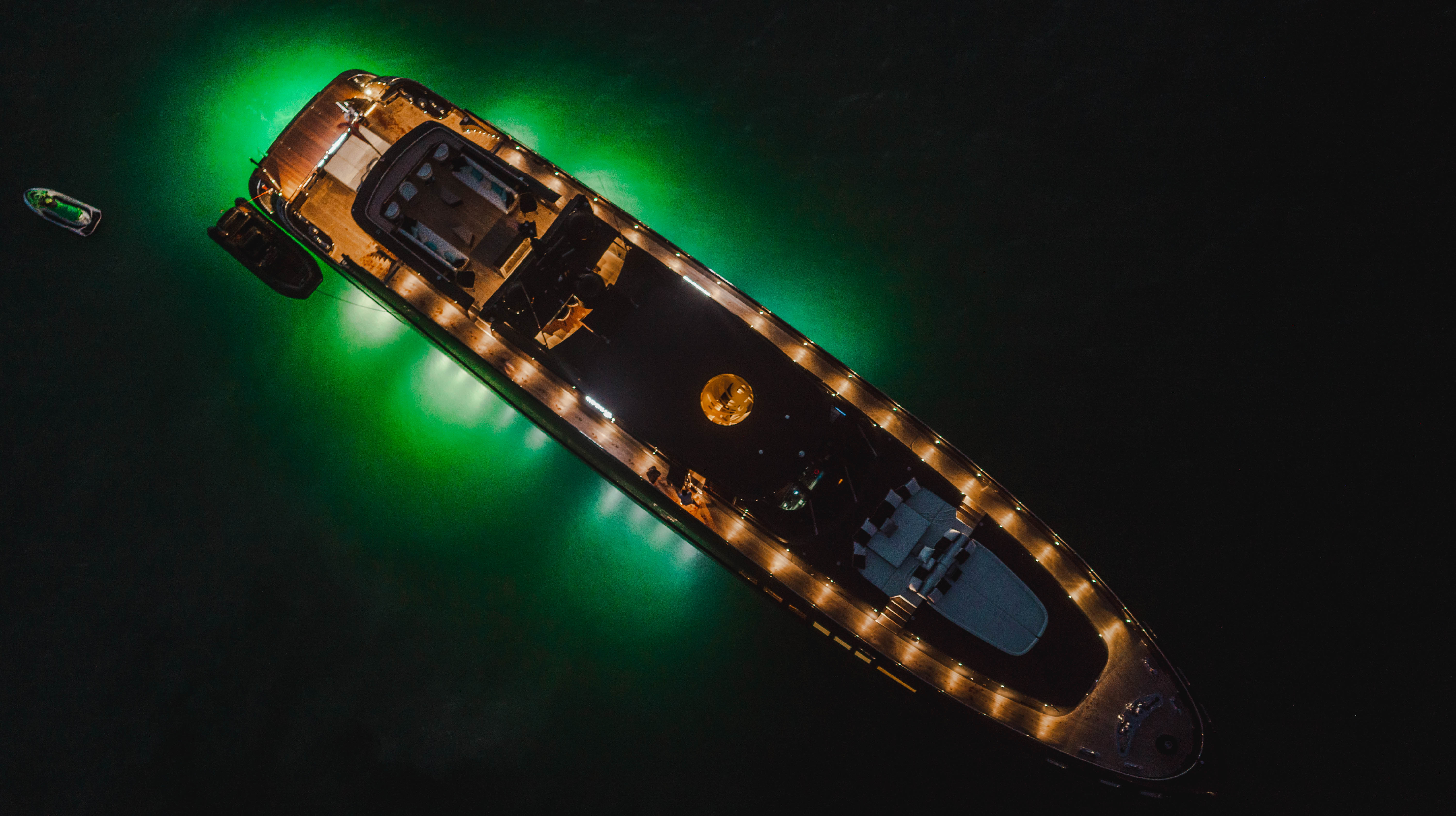 The many remarkable features aboard include a generous swimming platform, an outdoor bar and a cinema. The exterior areas feature an alfresco dining area and ample seating.