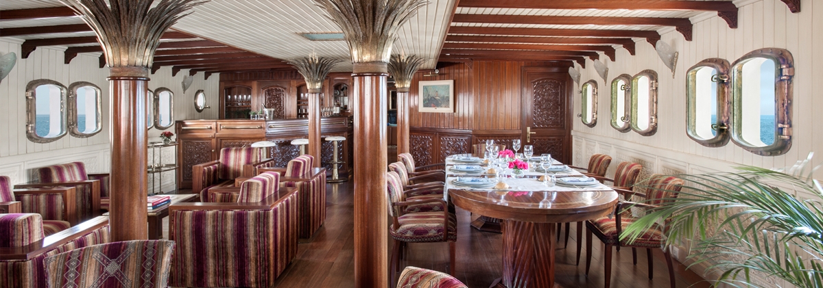 The central lobby is massive and a grand staircase leads up to the main deck where a large dining saloon and substantial lounge further aft are found. LA SULTANA has an interior pool and beach club.